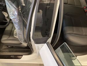 注确保车门密封条正确覆盖在左侧 B 柱上饰板上。