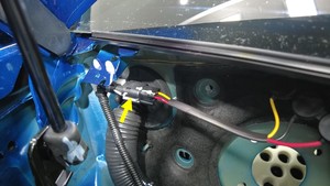 松开用于紧固右侧减震塔背后线束的卡子(2 个)。