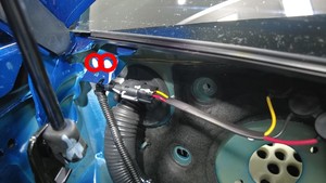 安装用于紧固右侧减震塔背后线束的卡子(2 个)。
