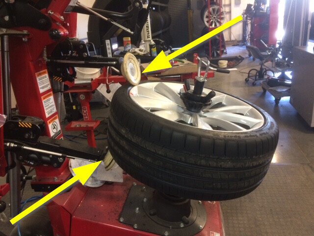 - 将轮毂放到轮胎机上,轮毂前部朝上。