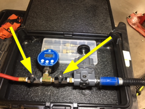 转动外壳泄漏测试仪上的两个阀钮至垂直位,将两个阀门关闭。
