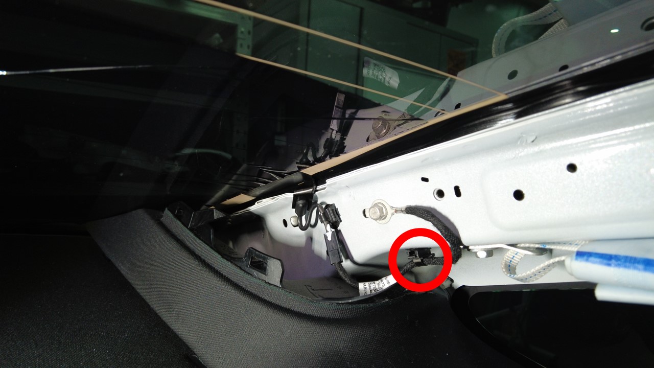 将左侧天线滤波器线束连接器从左侧 C 柱接地线上断开。