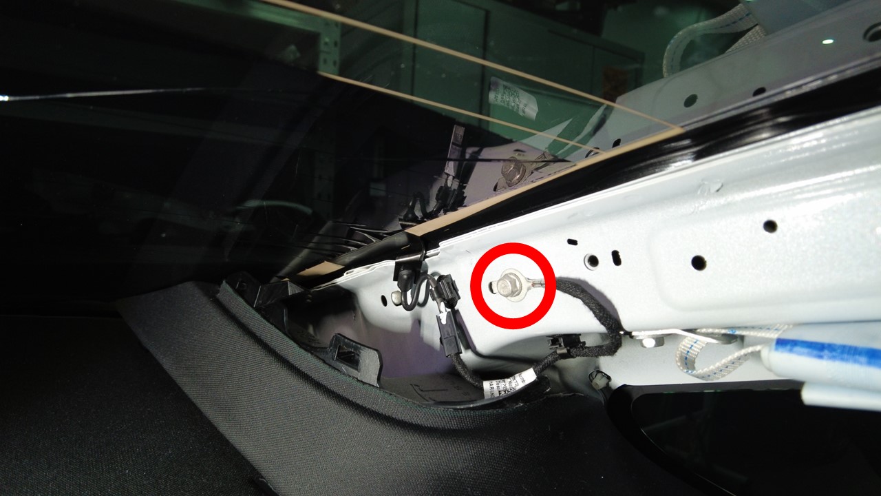 将左侧天线滤波器线束连接到左侧 C 柱接地线上。
