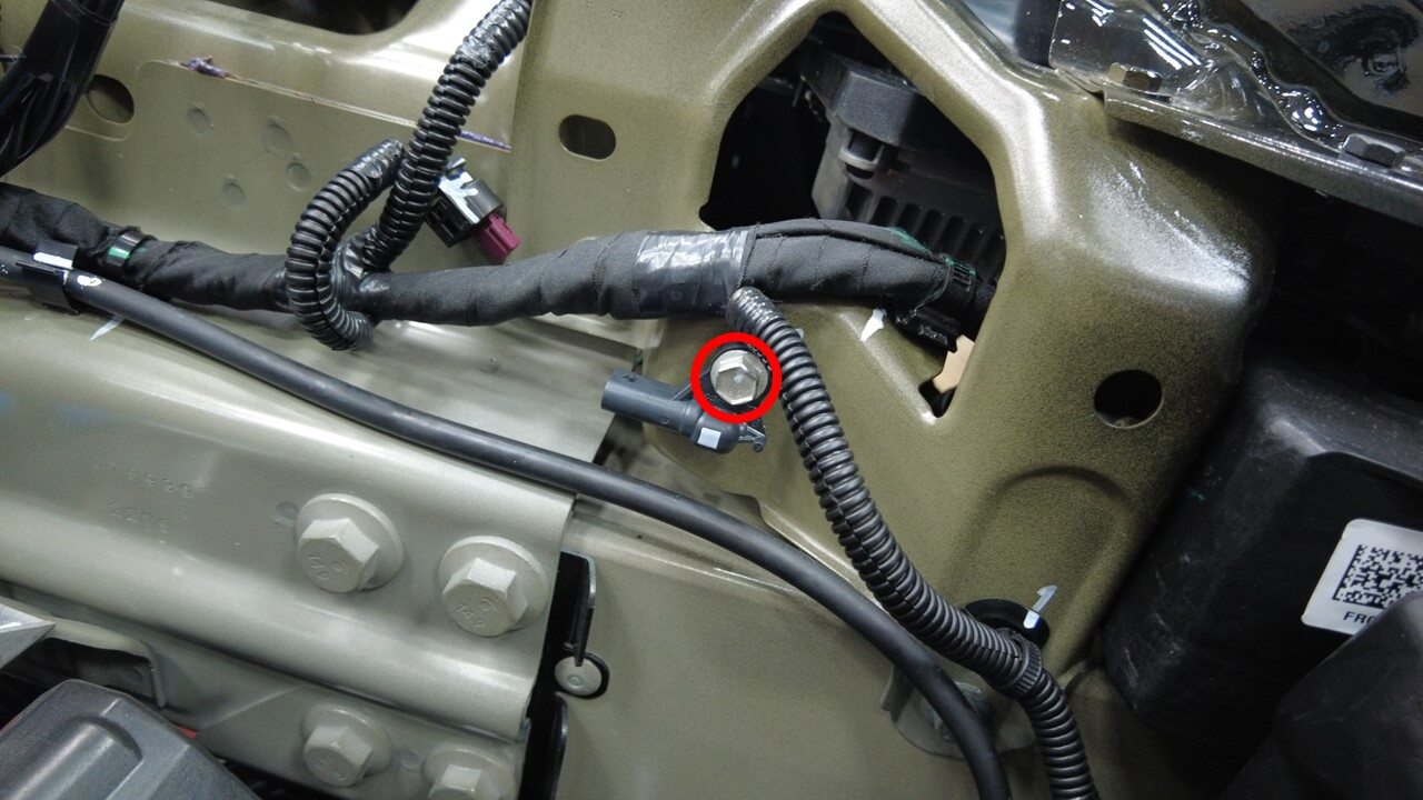 将前部线束夹(3 个)紧固到左侧纵梁外部区域。