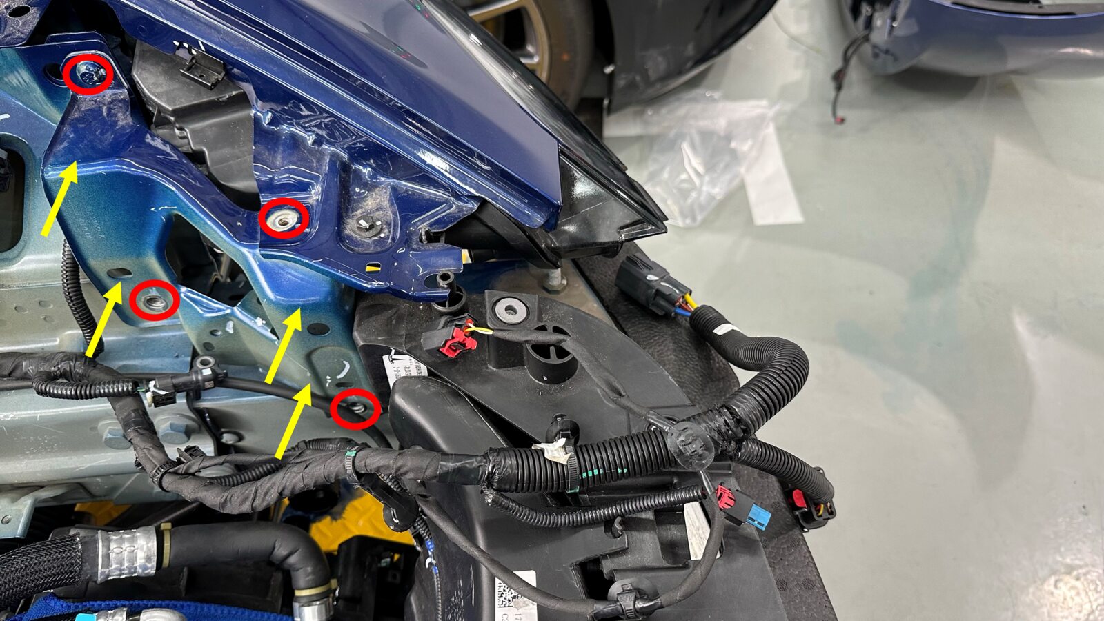 安装将前端模块 (FEM) 支架总成固定到车辆的螺栓(4 个)。