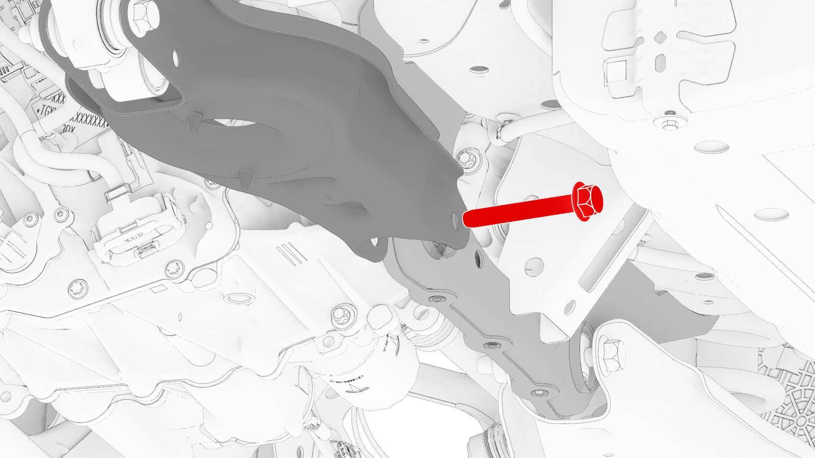 将 LH 后下部尾连杆安装到后副框架上,然后安装并用手拧紧将连杆固定到副框架的螺栓和螺母。