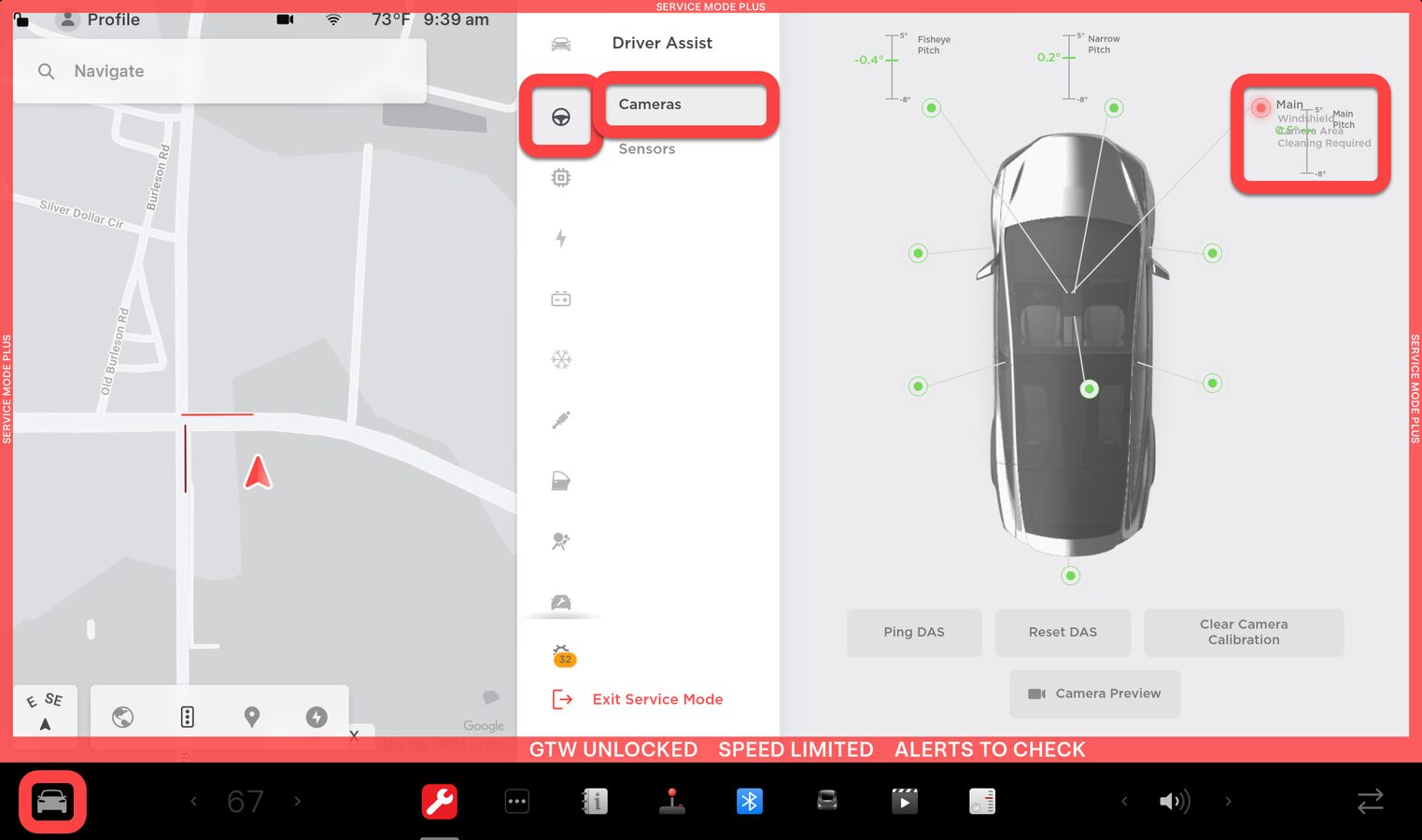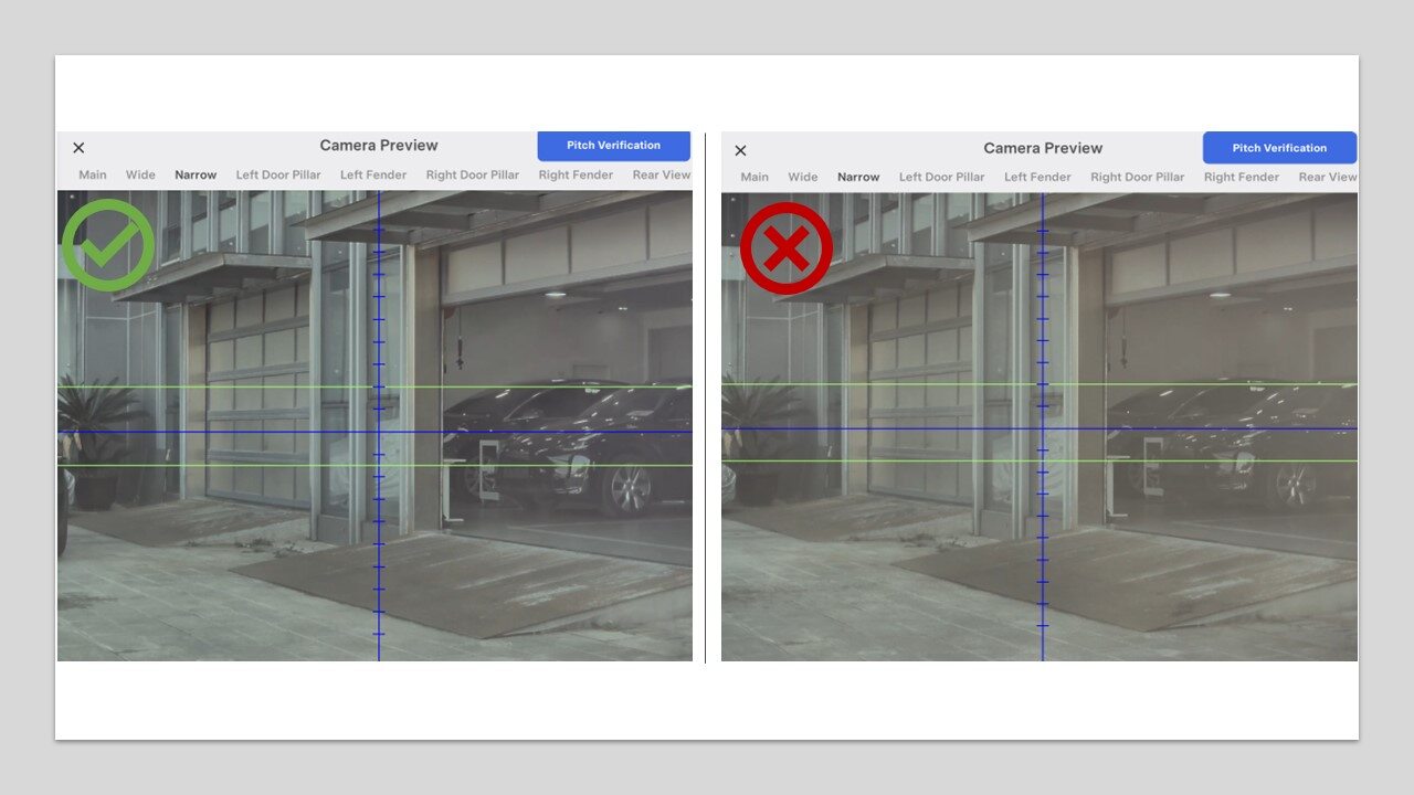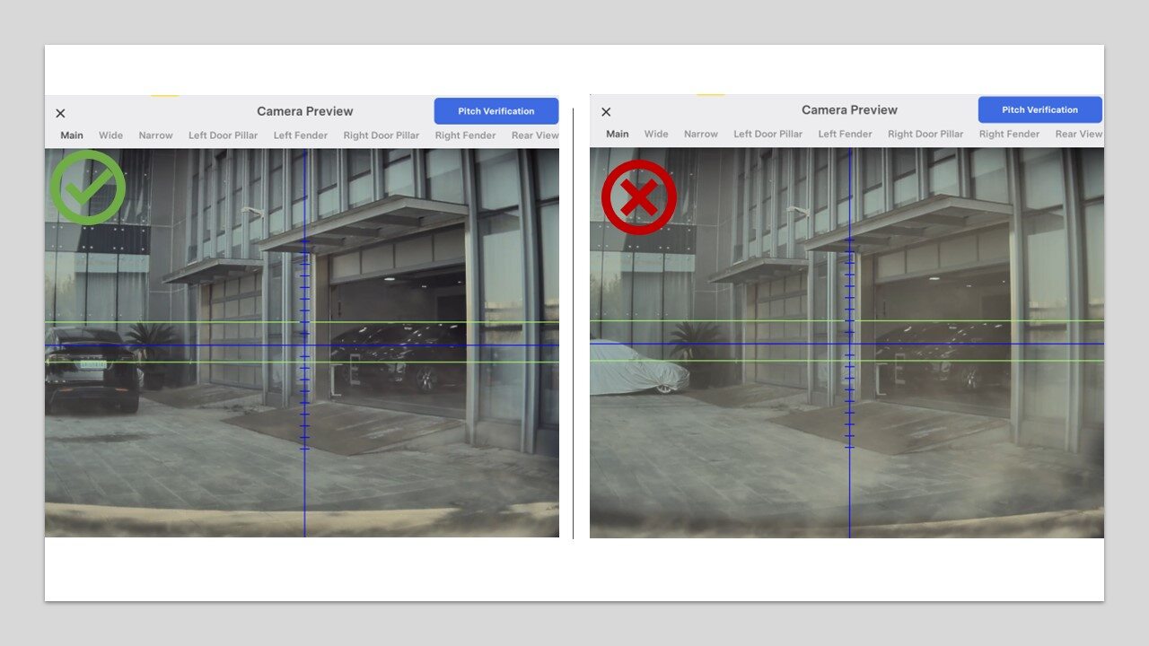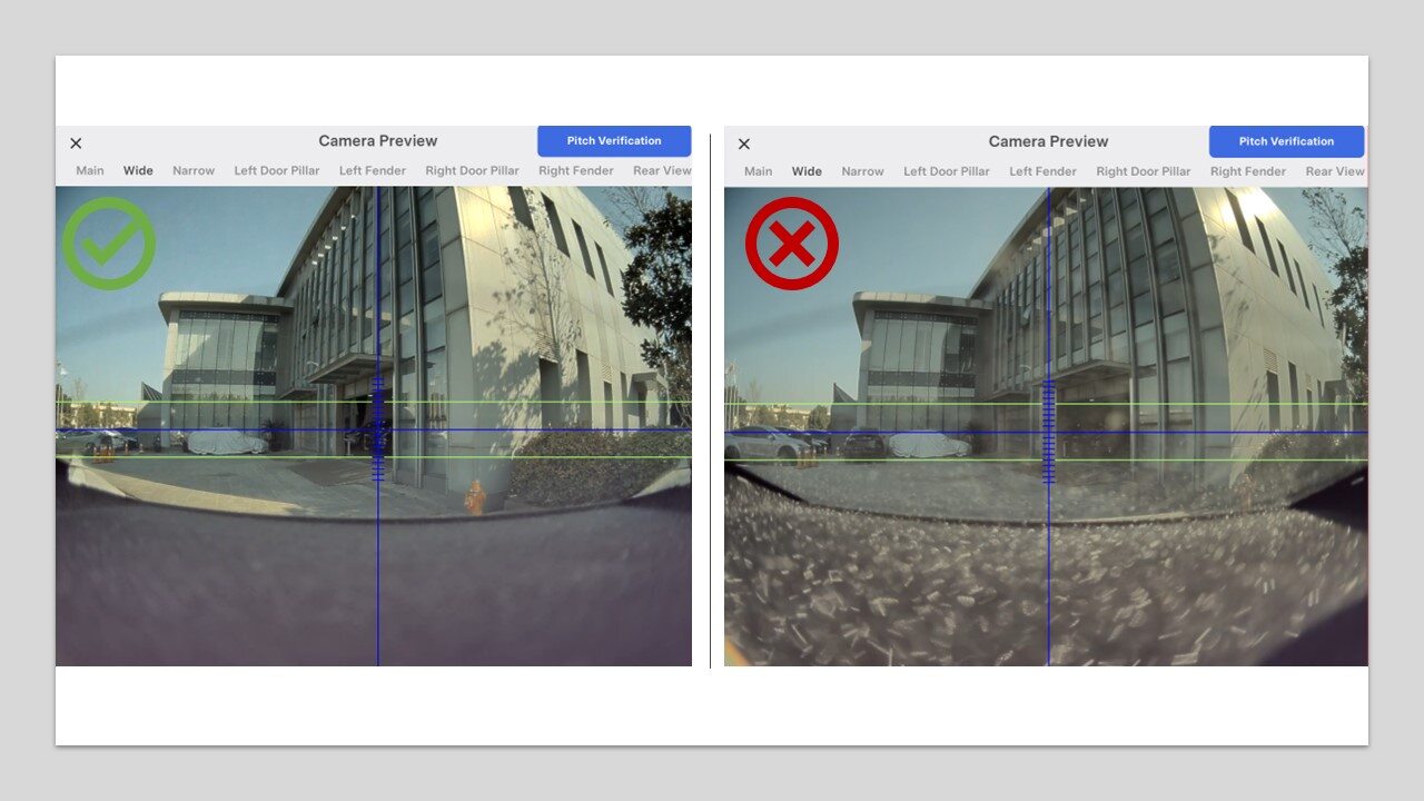 在触摸屏上,点击“维护模式”下的“扳手”(位于触摸屏 UI 界面底部),再点击,选择Main/Wide/Narrow选项卡,以预览所有前置摄像头并评估目视清晰度。