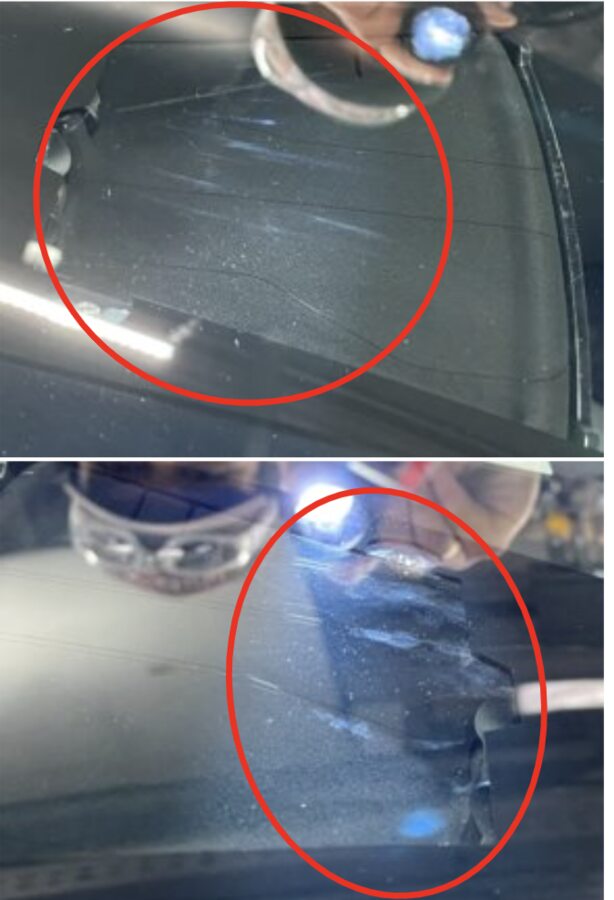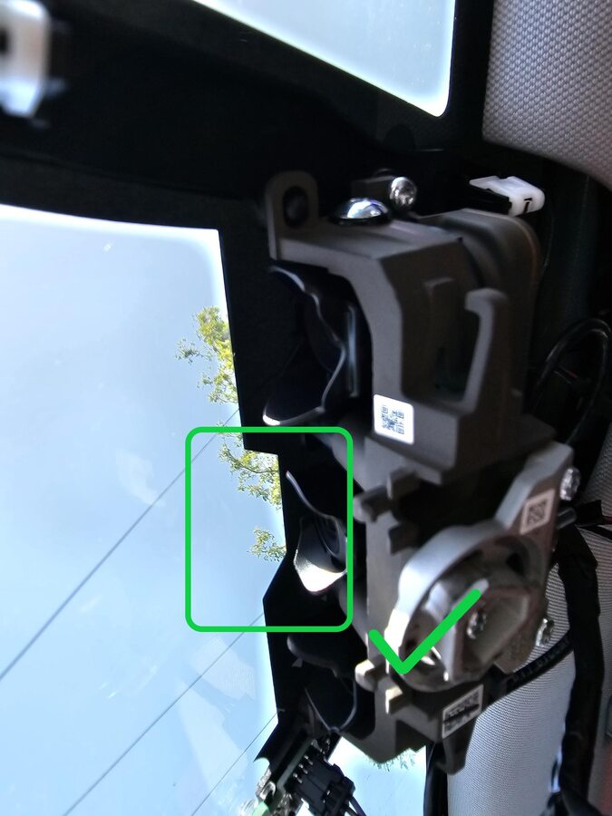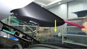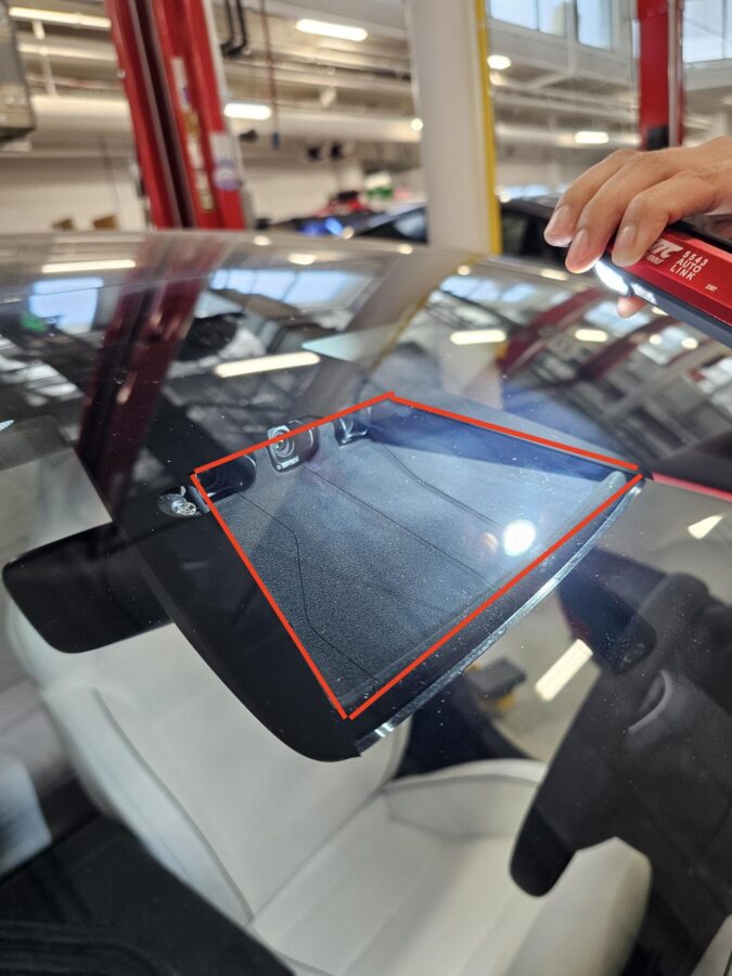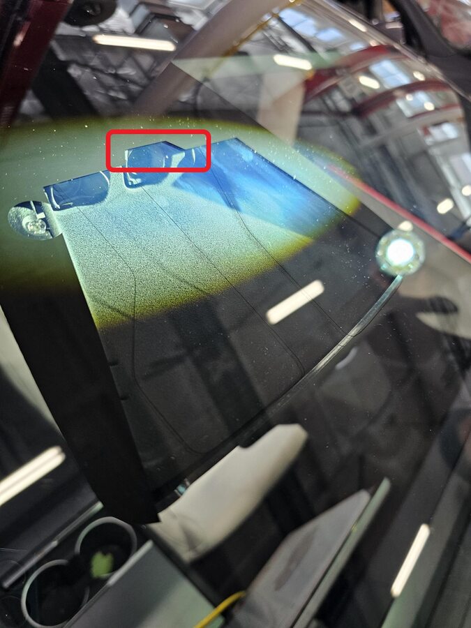 图 4. 前置摄像头区域 图 5. 塑料饰板工具;上抬并清洁摄像头和挡风玻璃之间的缝隙 图 6. 不合格作业示例 图 7. 合格作业示例 图 8. HW4 车辆凹槽 -