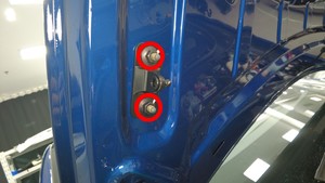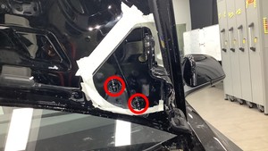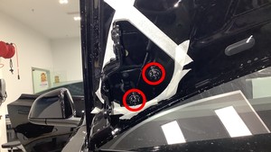 - 使用异丙醇 (IPA) 清洁前备箱盖左右铰链螺栓和周围区域,然后等待风干至少 1 分钟。
