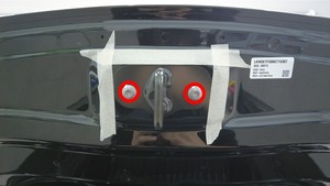 - 使用异丙醇 (IPA) 清洁前备箱盖前部,然后安装前部 Tesla 徽标。请参阅正面 T 形徽标 ((拆卸和更换))。
