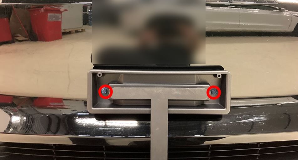 安装将前车牌架固定到前饰板的自攻螺钉(零件号 1104972-00-A)(2 个)。