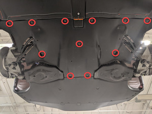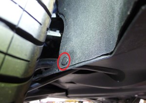 - 在将后流线型护板固定到车辆的螺栓(11 个) 螺纹处涂抹一小滴 Loctite 222 。