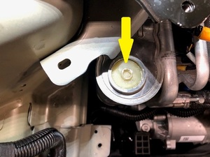 小心按下 Schrader 阀门(2 个),以平衡空调系统压力和实际环境大气压。