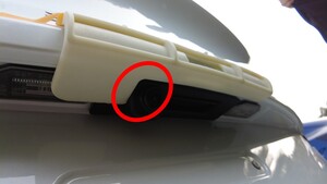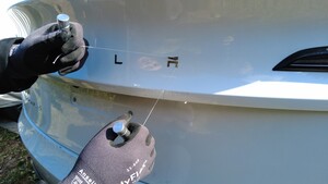 - 揭下徽标保护膜,然后将对齐工具从后备箱盖上拆下。