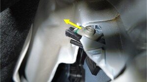 安装将左后轮拱内衬固定到后饰板的卡子(3 个),然后对右侧重复此步骤。