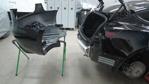 拆下将后饰板左右角固定到车身的螺栓(2 个)。