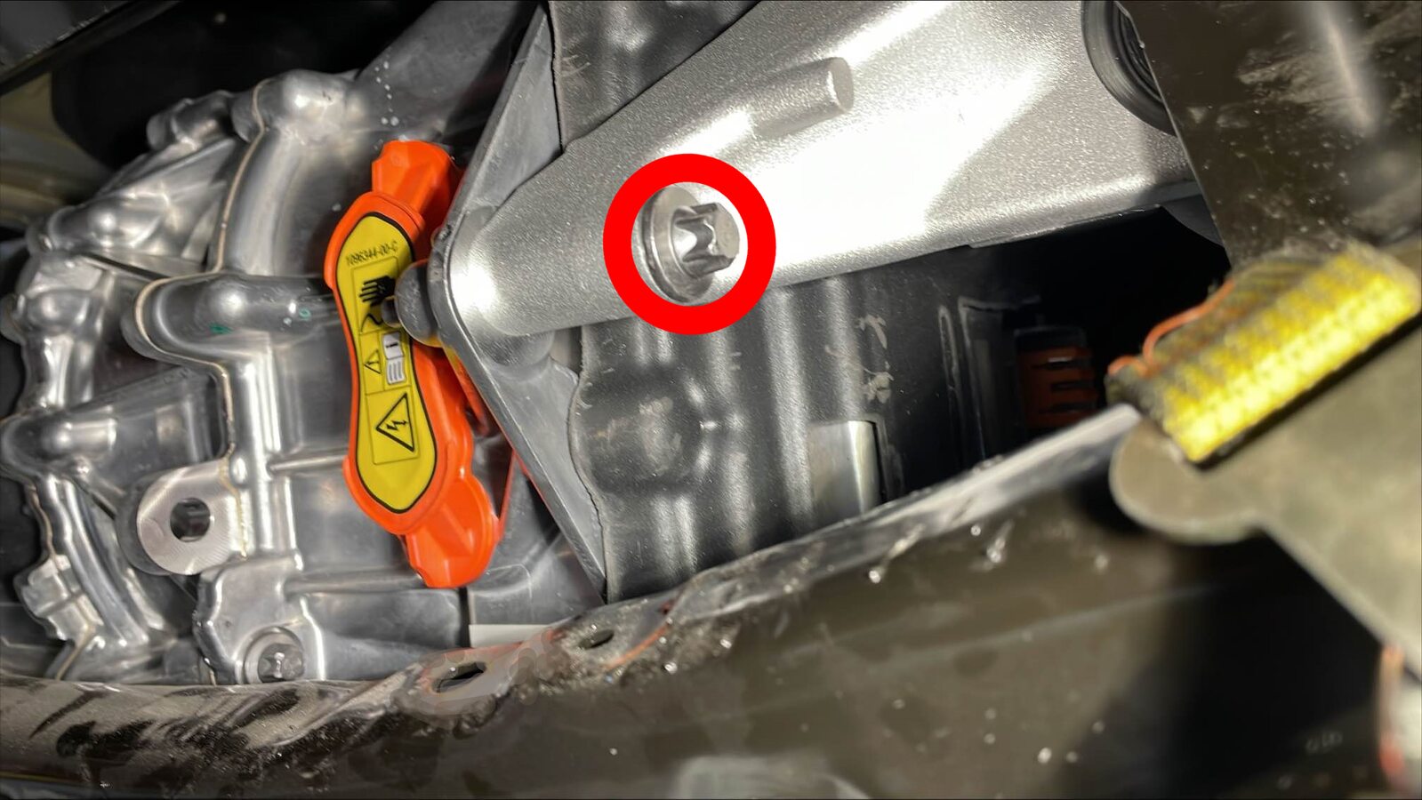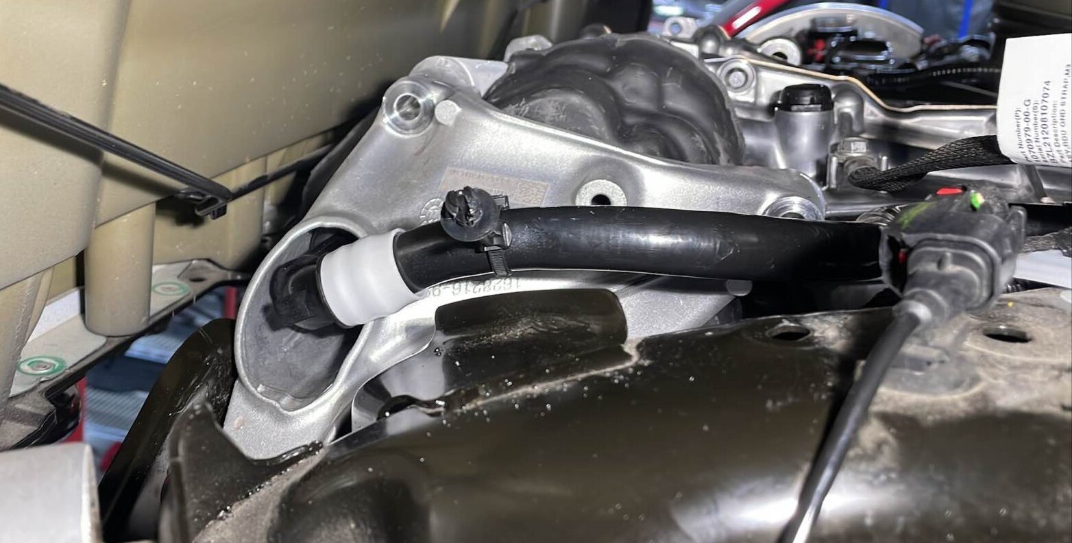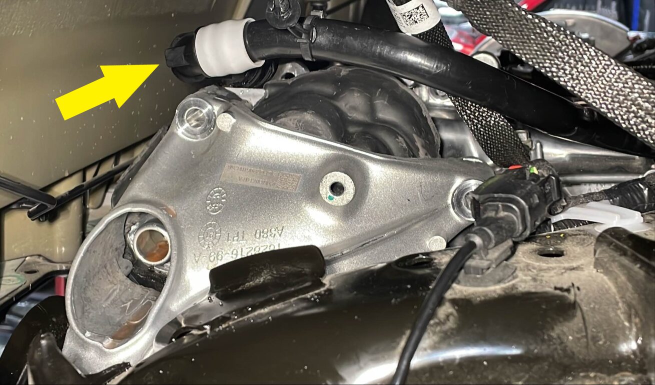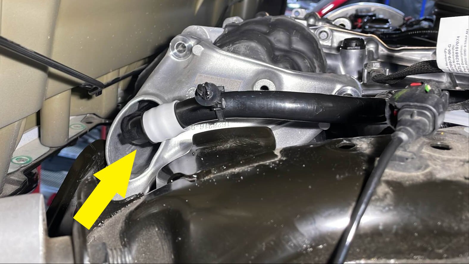 - 拆下后驱动单元变流器入口软管。请参阅 管道(动力总成),后驱动单元逆变器入口 ((拆卸和更换))。