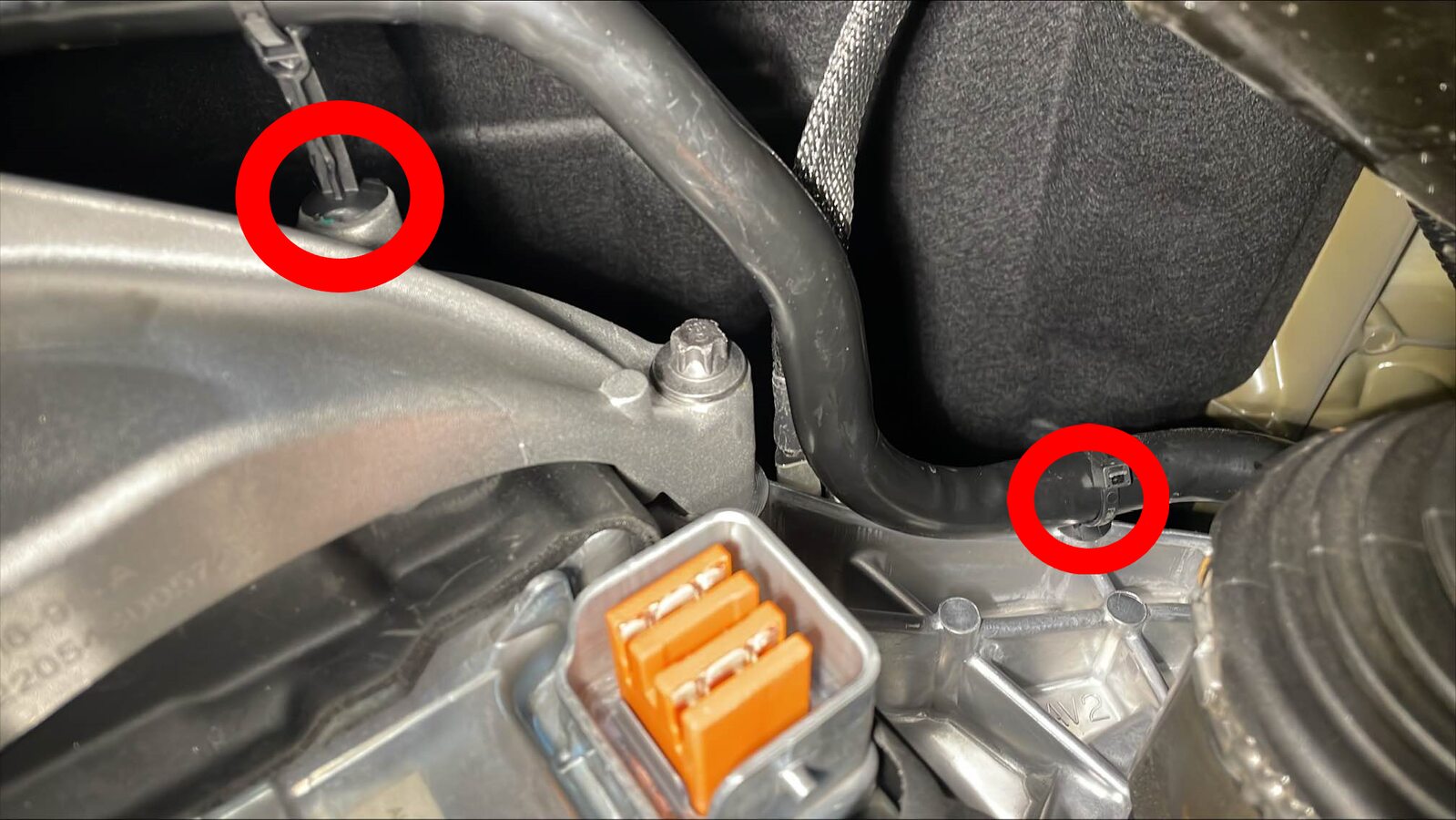 连接右副车架线束连接器。