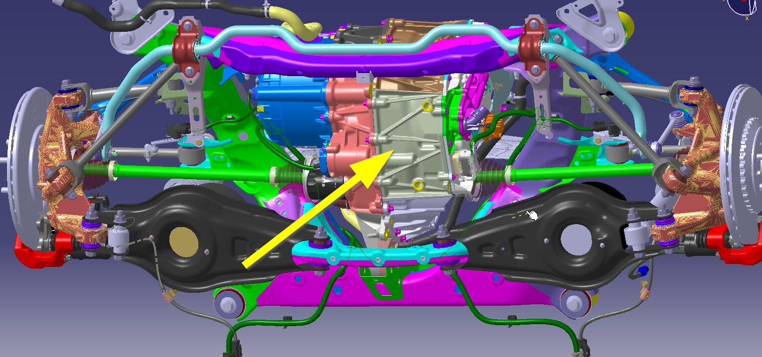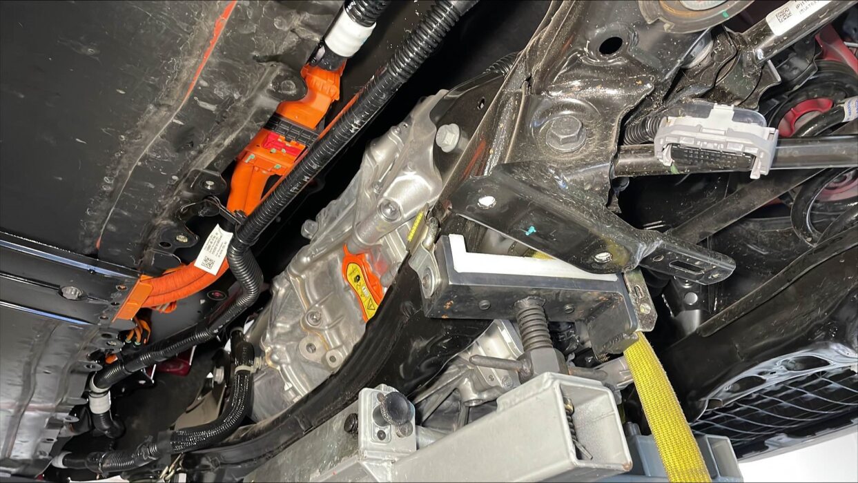 部分降下后副车架和驱动单元总成。