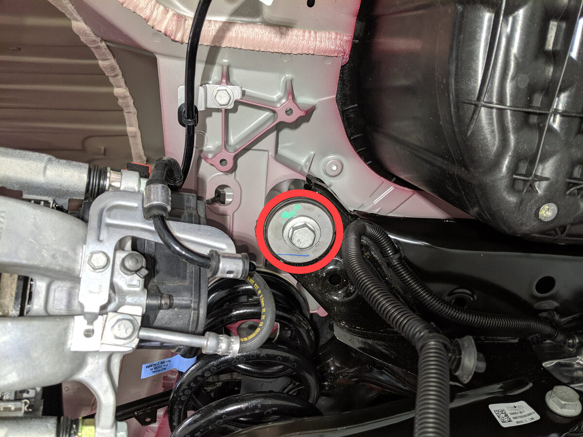 安装并手动拧紧新的后副车架左侧螺栓,将后副车架固定到车身。