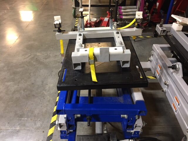 将副车架举升工具放置在后副车架下方的适当位置。