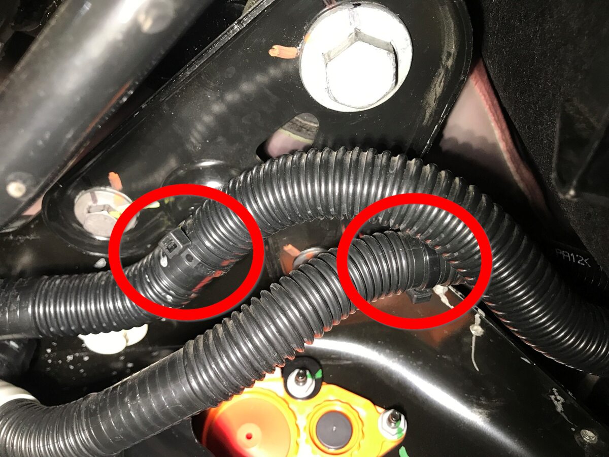 断开右副车架线束电气连接器。