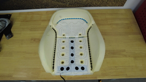 逆时针旋转第一排右侧座椅靠背通风扇,将其安装到泡沫垫上。
