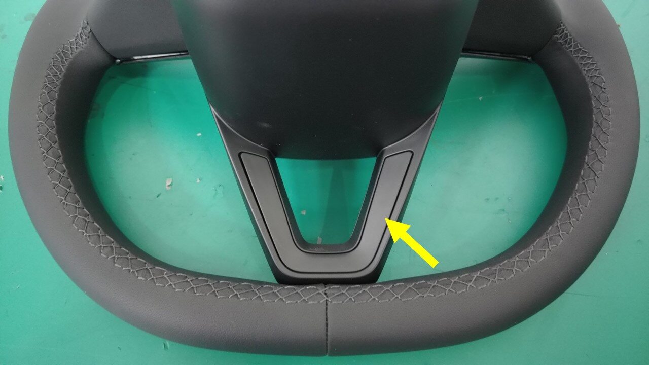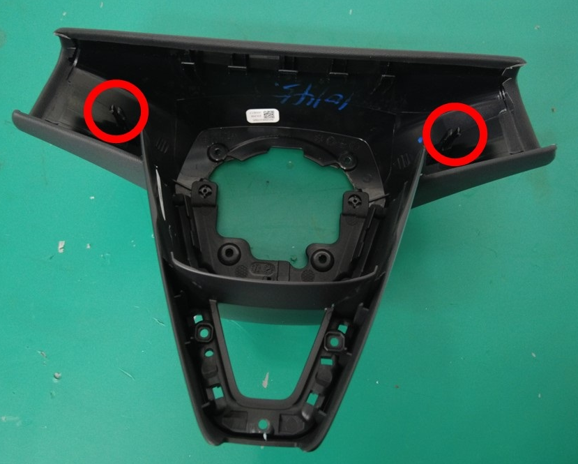 - 将辐条下罩放置到方向盘上,然后安装将辐条下罩固定到方向盘的定位夹(2 个)。