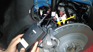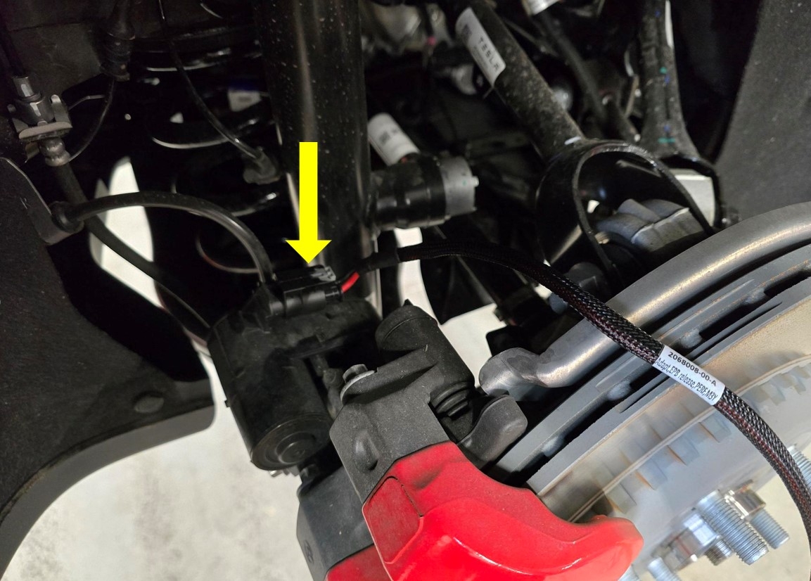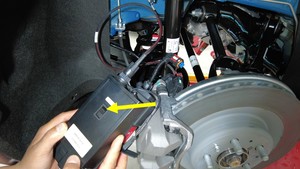 将电子驻车制动释放工具从左后电子驻车制动钳连接器上断开。