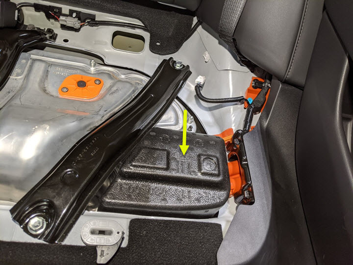 拆下第二排高压电池仓 12V 盖帽。