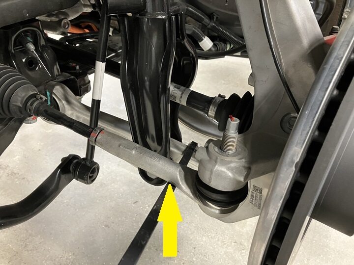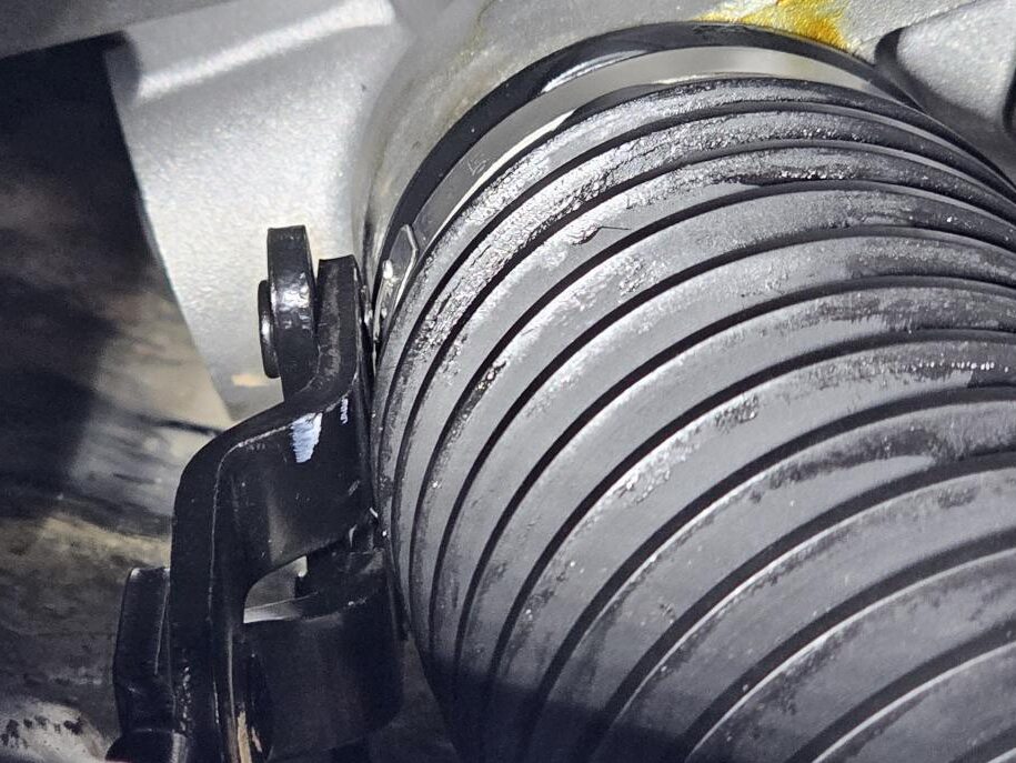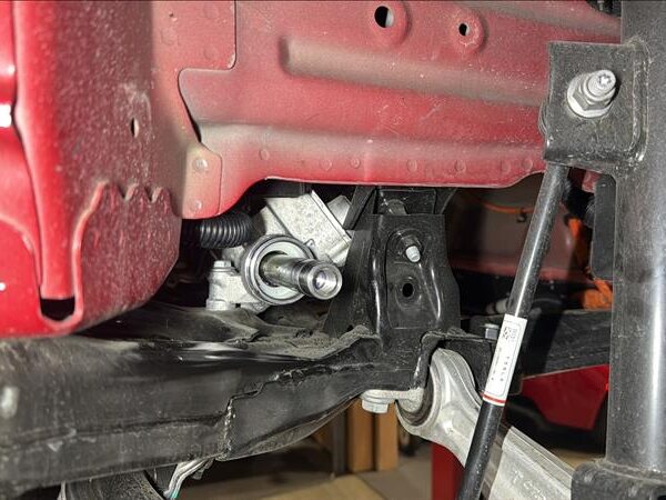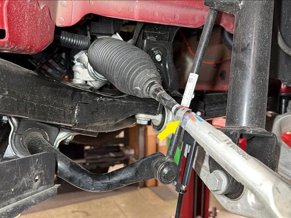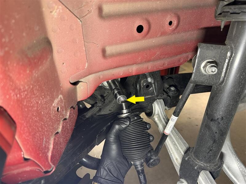 Slide the bellows toward the LH outer tie rod end to access the ball joint.