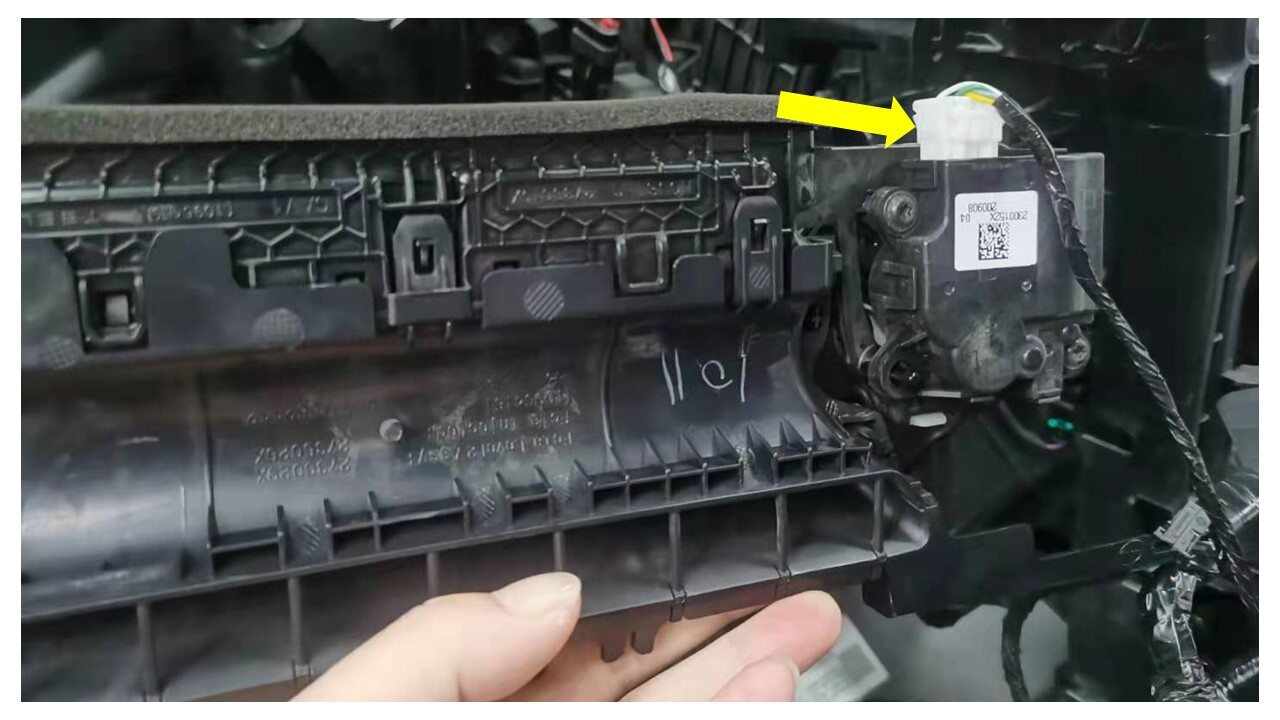 将左前通风口放置在车辆上,然后连接通风口电气连接器。
