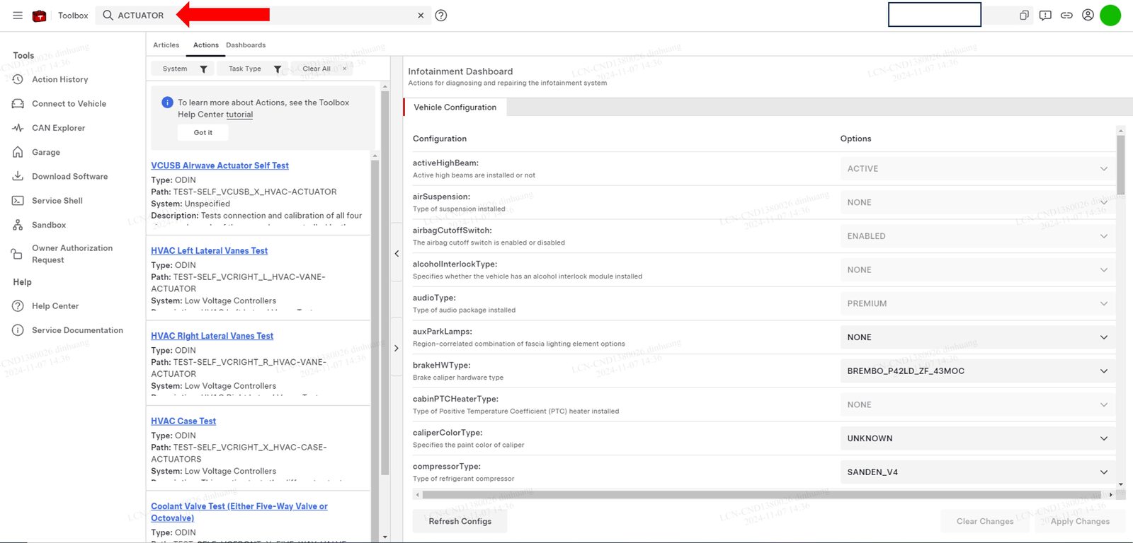 - 运行 ODIN 例行程序 TEST-SELF_VCRIGHT_X_HVAC-CASE-ACTUATORSvia Toolbox:(link)