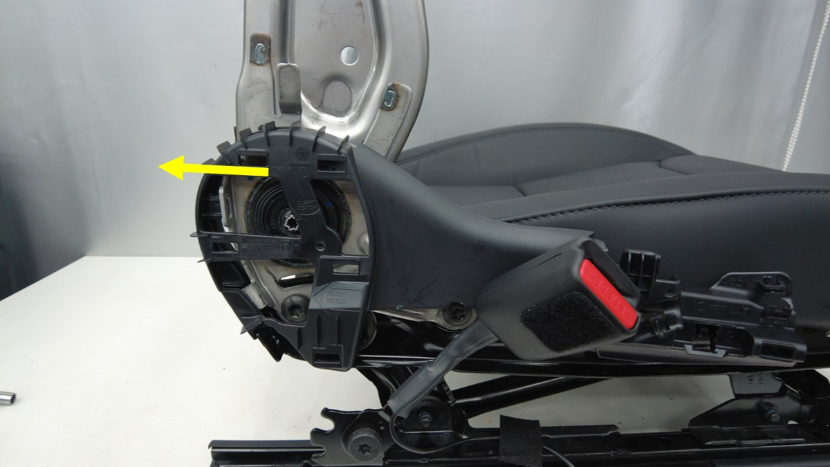 注可能需要使用橡胶锤多次敲击靠背倾角调节管,才能将其从座椅上拆下。