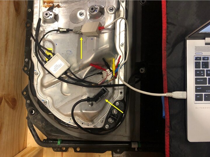 Connect HV battery communication harness to HVC and CAN dongle