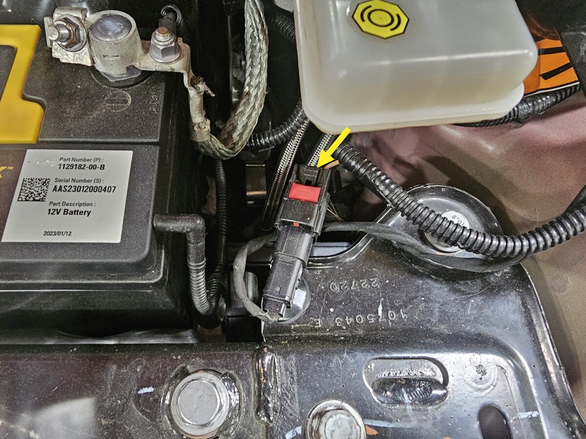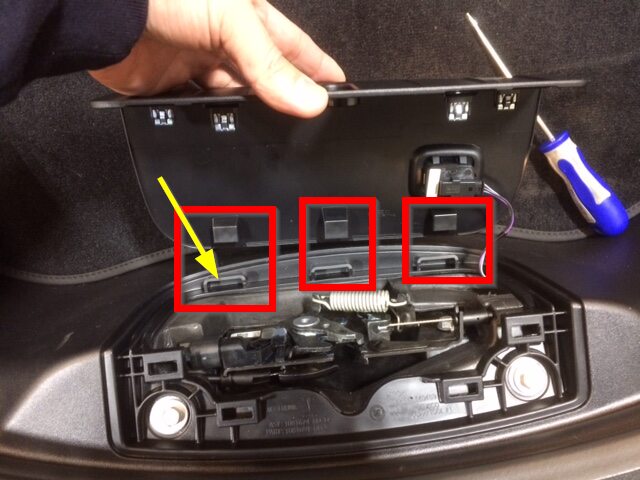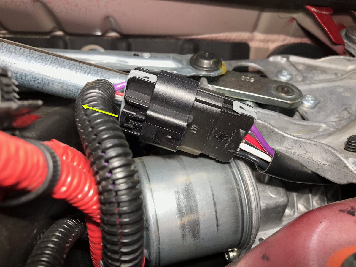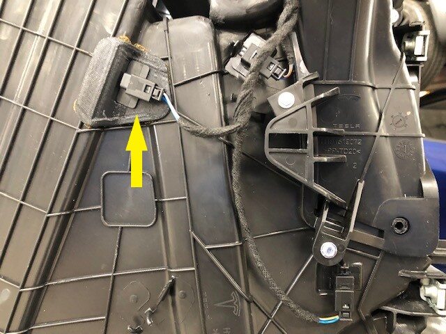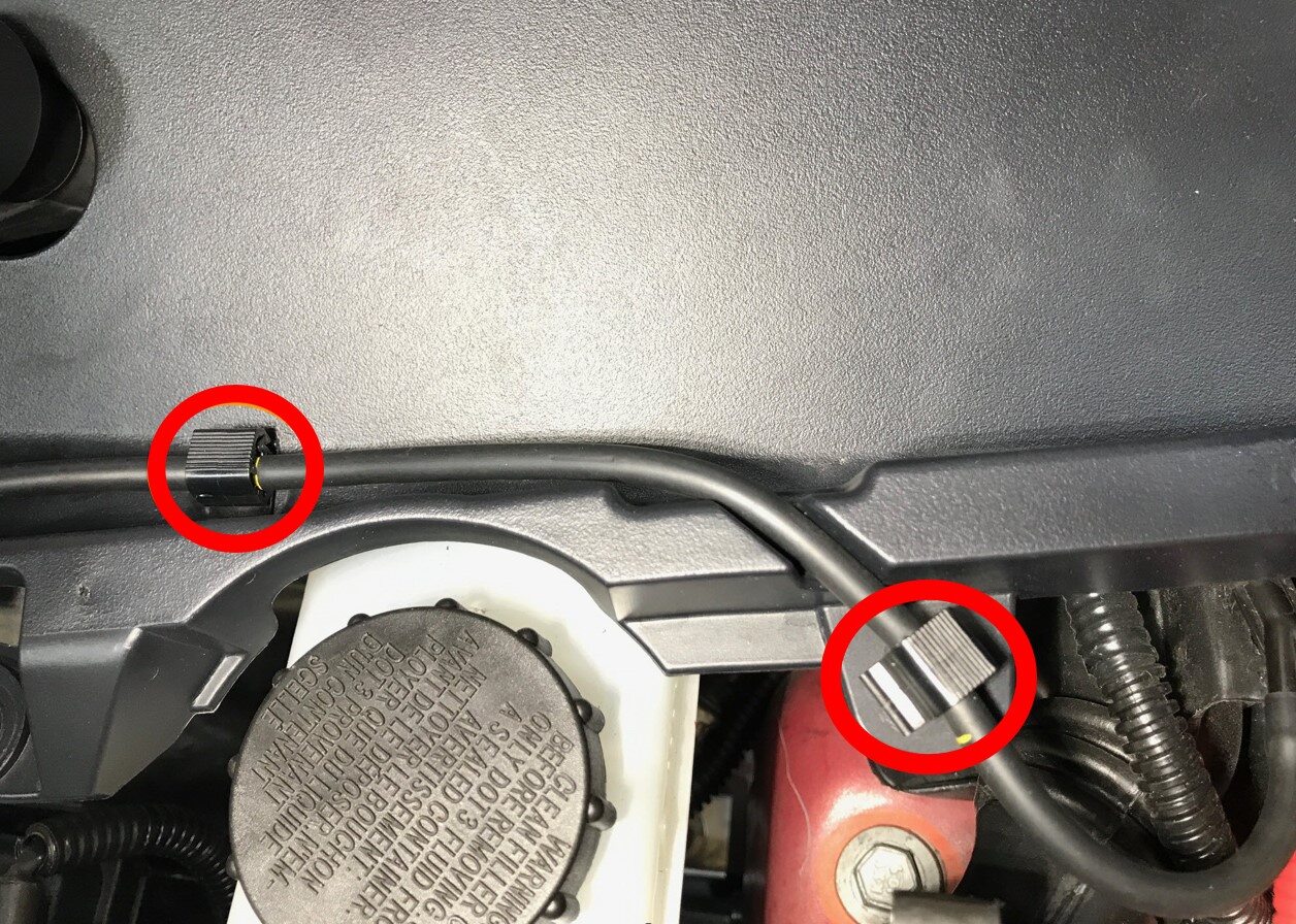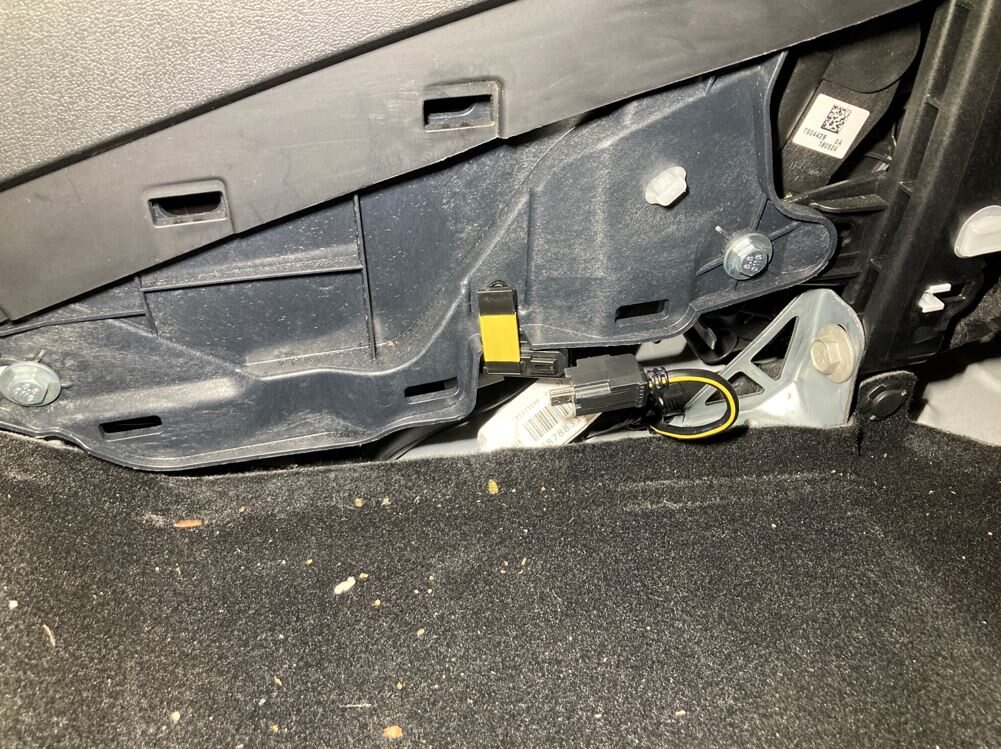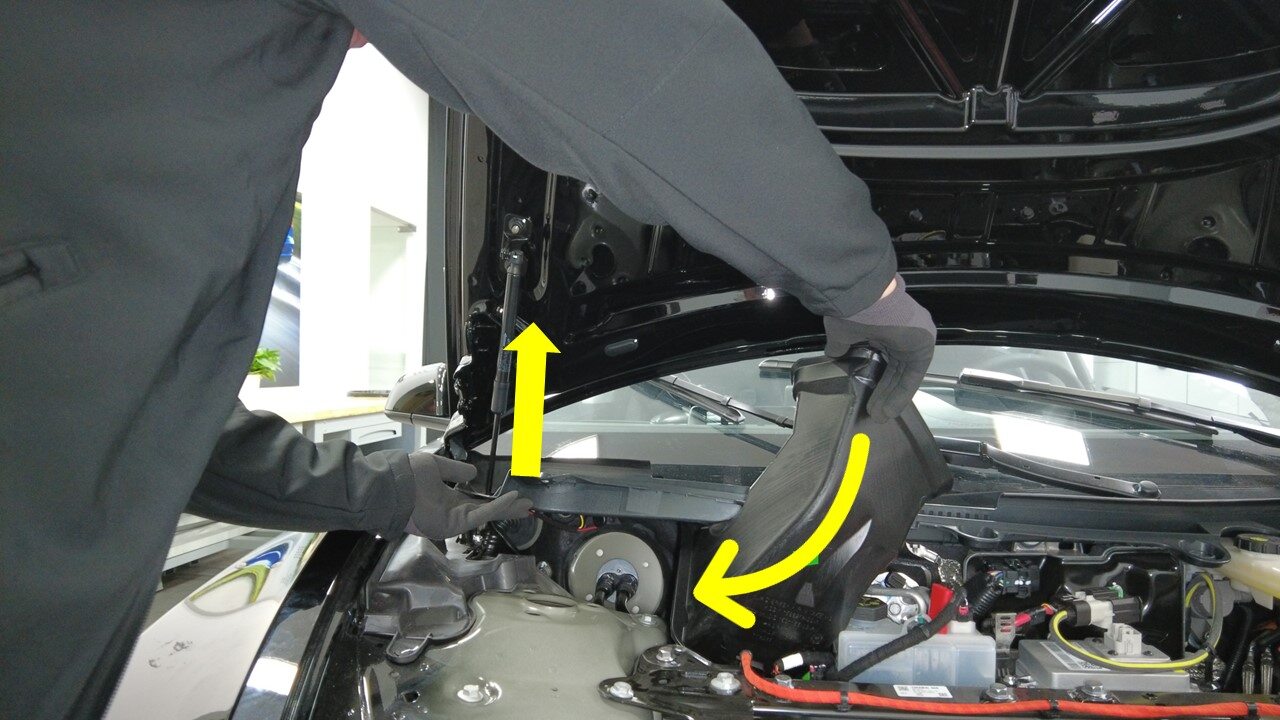 注4x clips, 1x connector, Frunk safety switch, 3x guide tabs, Align 3x tabs then push downward to secure clips
