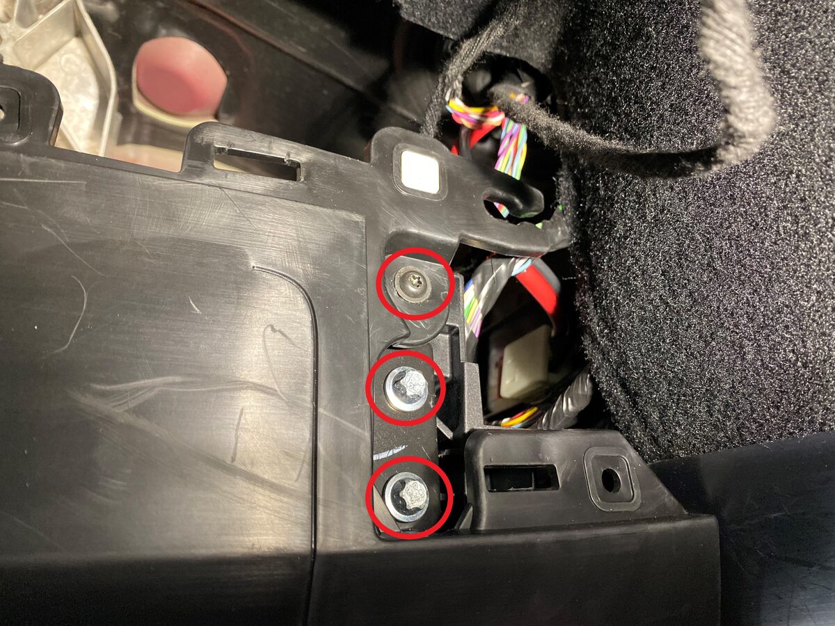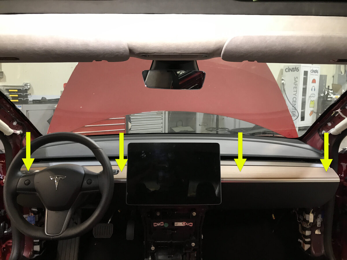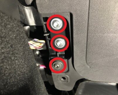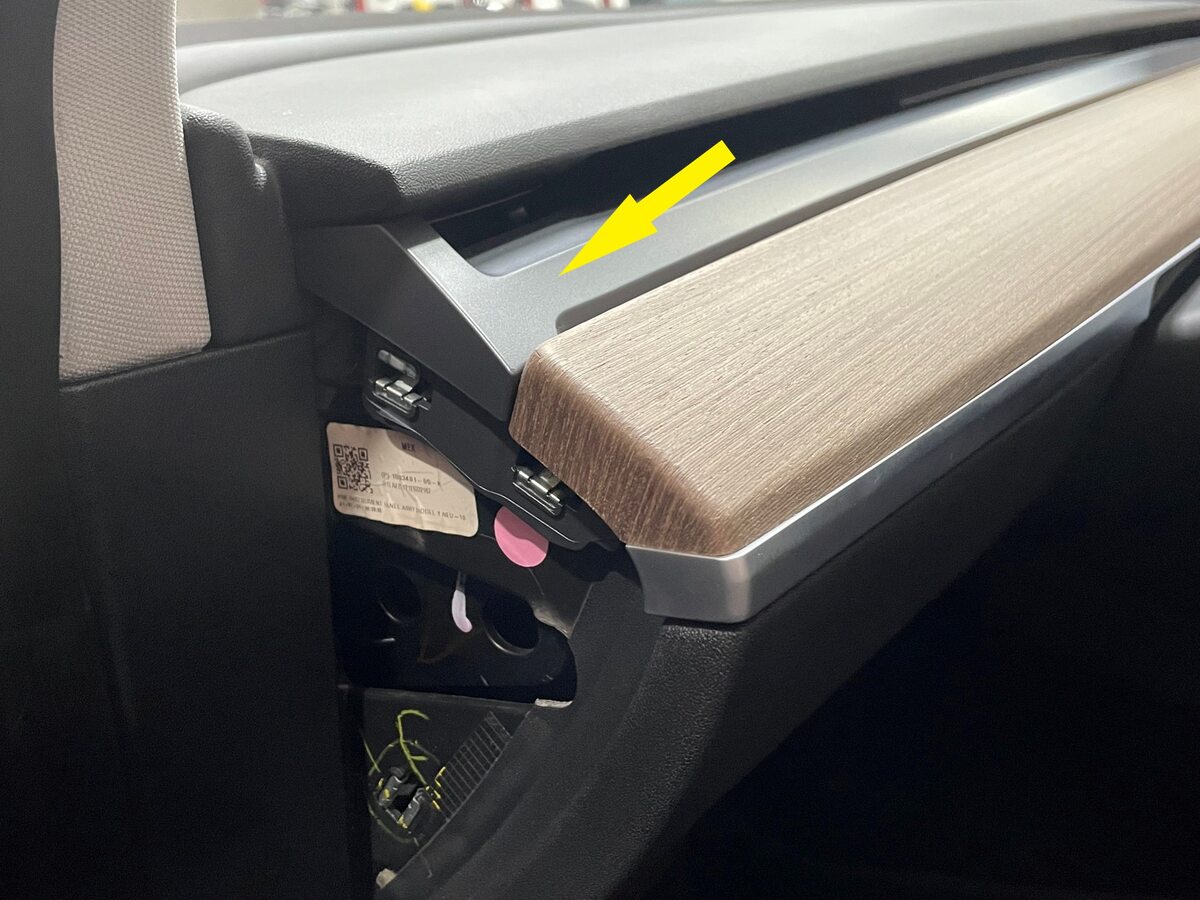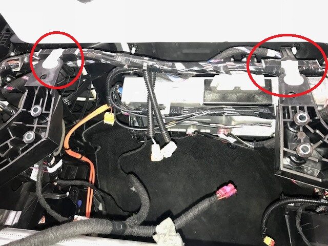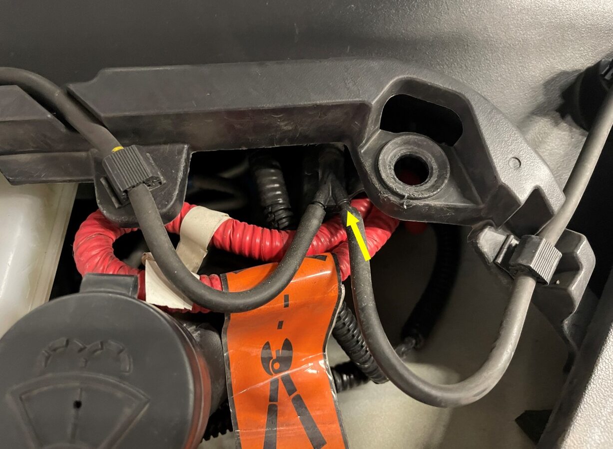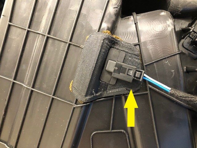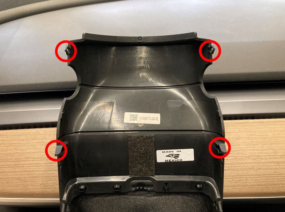 注4x clips, 1x connector, Frunk safety switch, 3x guide tabs, Align 3x tabs then push downward to secure clips