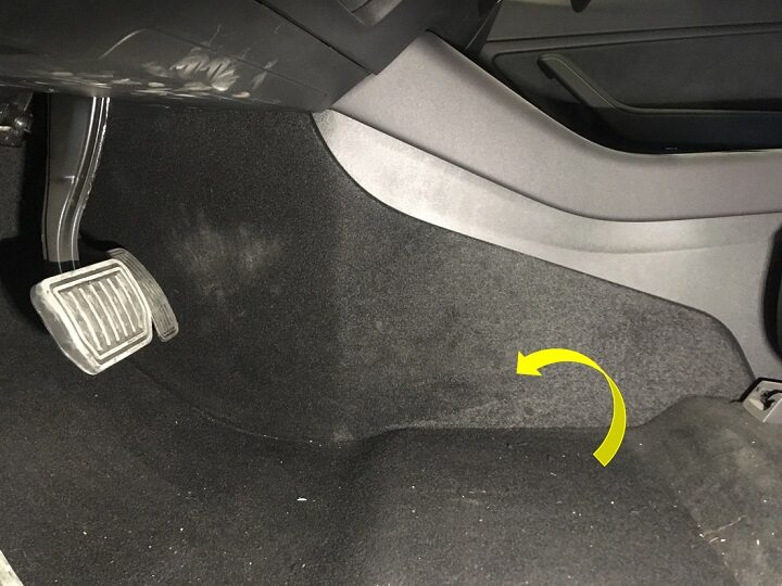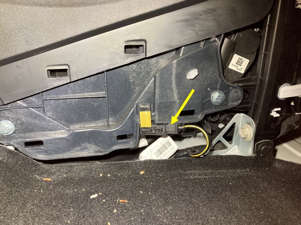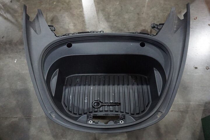 注4x clips, 1x connector, Frunk safety switch, 3x guide tabs, Grab closeout panel from bottom then pull it upward to release clips, Disconnect switch