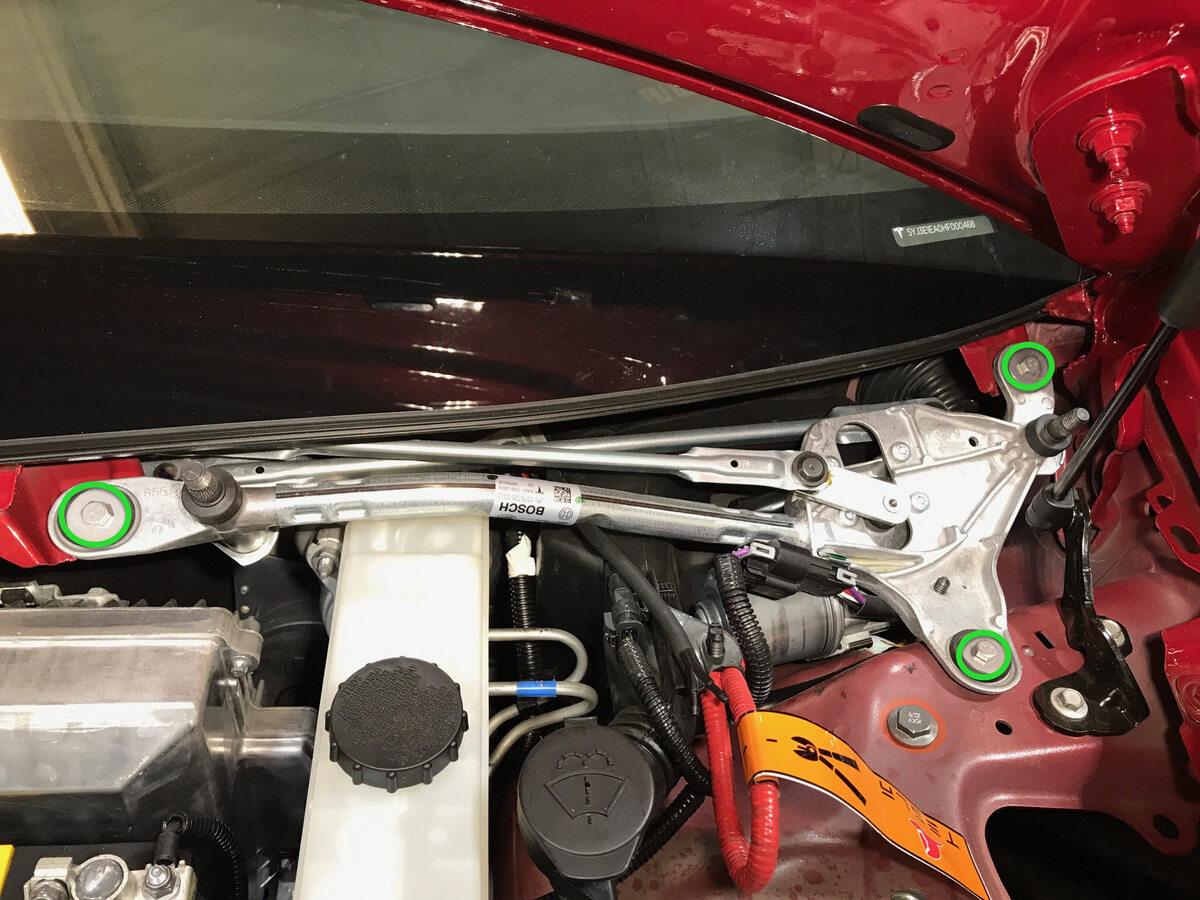 注1x nut, 15mm, 25 Nm, Make sure wiper tip is aligned between two indicators at corner of windshield