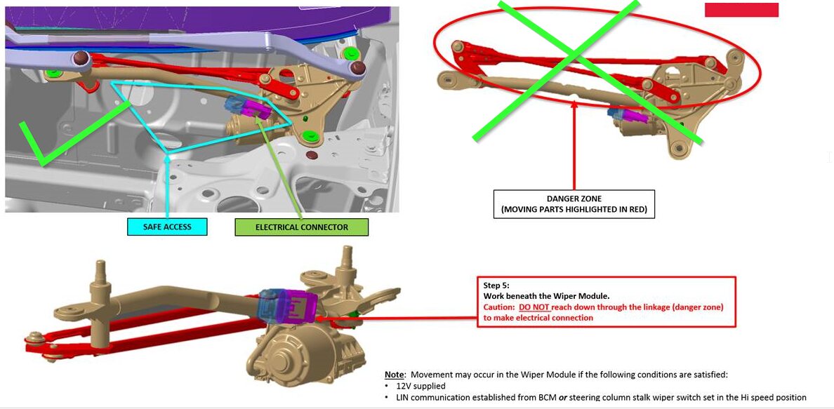 注1x connector, Do NOT place limbs within the linkage movement area as wiper arms will automatically transition to parking mode