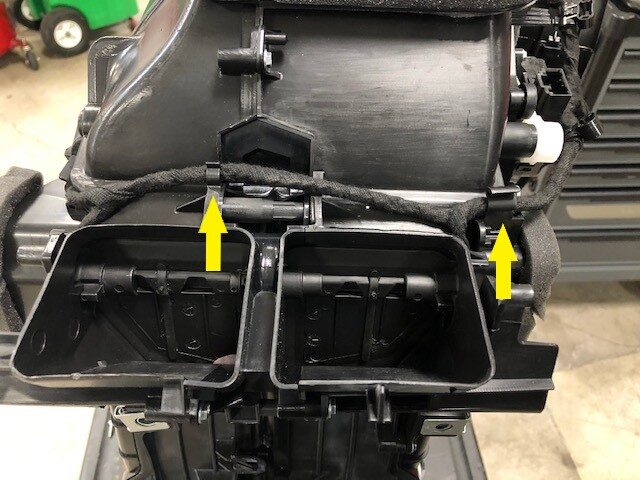 Connect washer hose from LH wiper arm to Y-tube fitting and secure washer hose clips