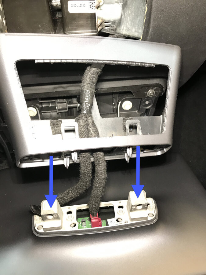 注Recommend assistance, Tilt front of console downward, Slide assembly towards front of vehicle and tilt rear of console down into place