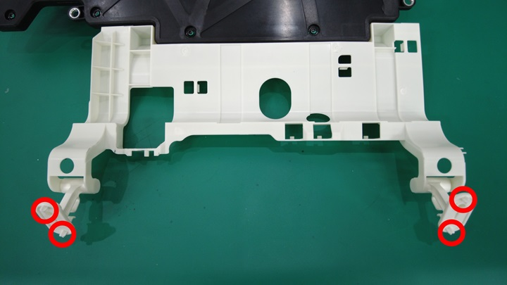 将所有高压电池仓线束夹(5 个)和胶带(1 个)从高压控制器铰链托盘上松开。