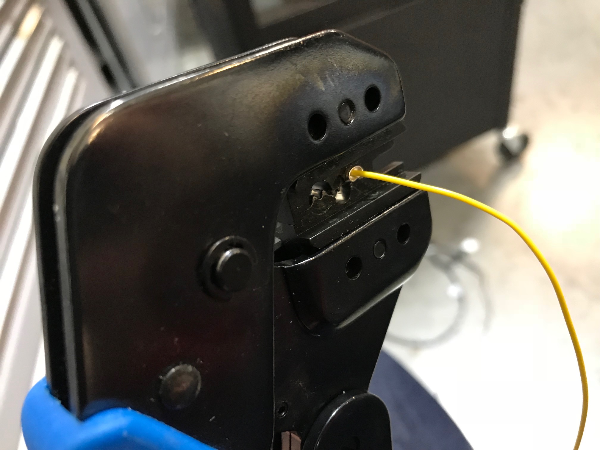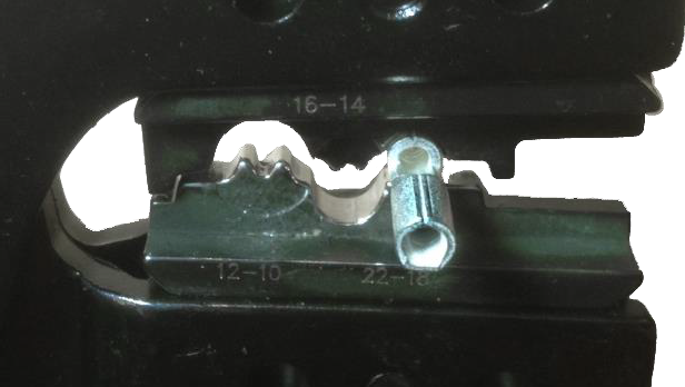 将接线管放入压接工具中。
