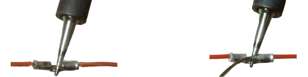 注使热缩管中心与接线管中心对齐。