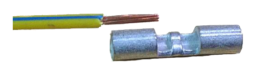 注确保线股已触及接线管的中间止点,无线股从接线管侧伸出,且筒内部分无绝缘皮。