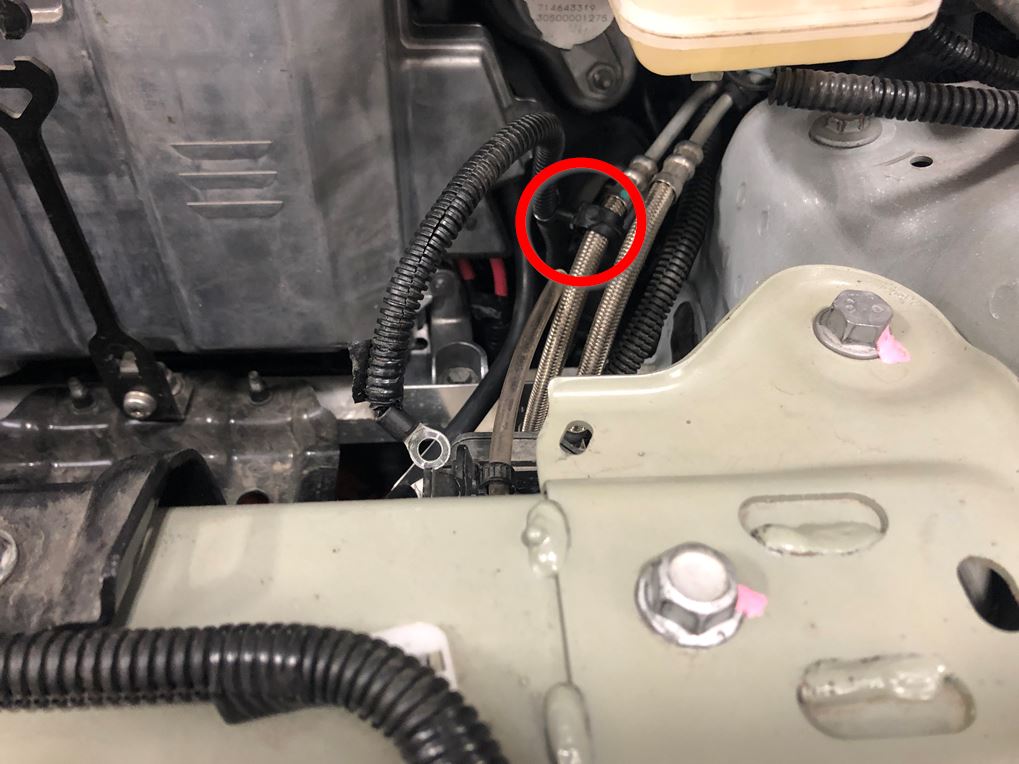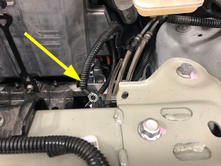 将前部线束夹固定到制动管线管束上。