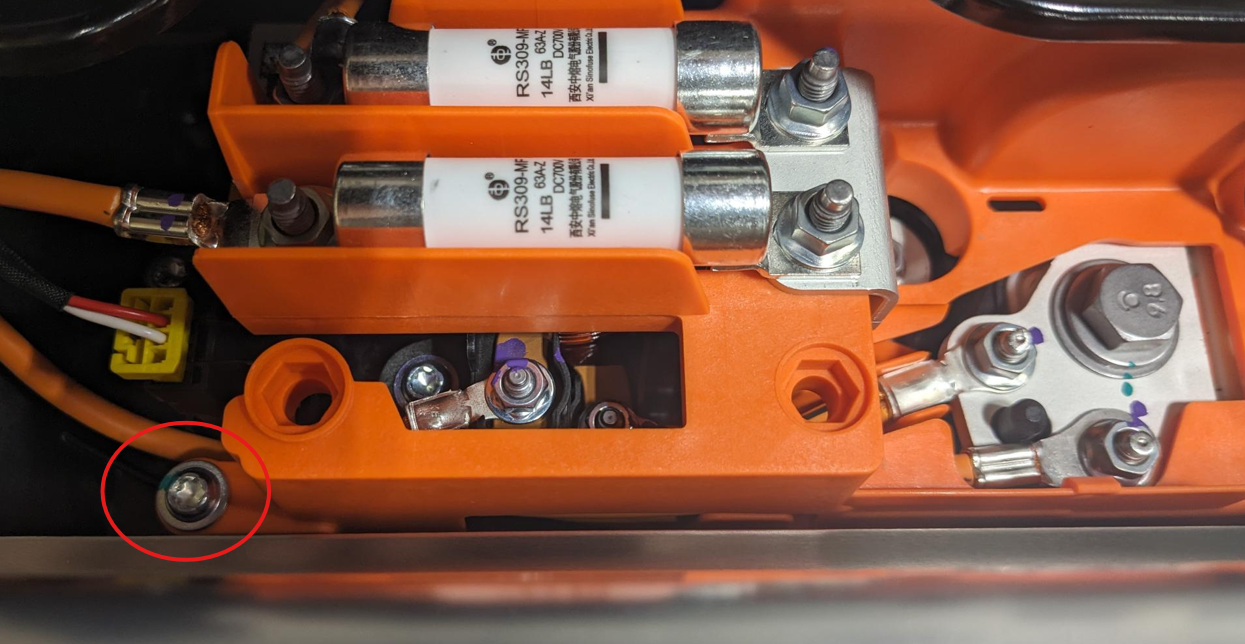 Remove the 700VDC 63A PCS output fuse from AWD bus and dist assembly