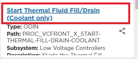 运行“启动温度系统液体加注/排放(仅冷却液)”例行程序。 PROC_VCFRONT_X_START-THERMAL-FILL-DRAIN-COOLANTvia Toolbox: (link)via Service Mode Plus: