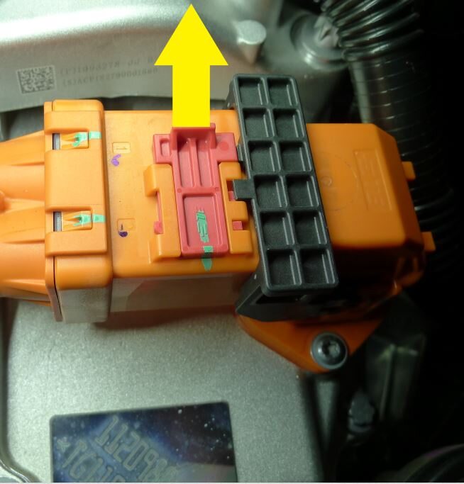- 将高压电池仓探针盖从高压电池仓盖板上拆下